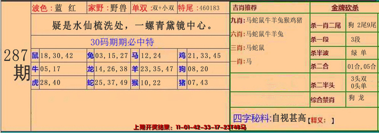 287期❃:蛇马羊兔龙鸡狗牛猴 开:?00准❃ |